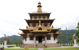 Khamsum Yuelley Namgyel Choeten, located on a ridge overlooking the picturesque Punakha valley, this wonderful Buddhist structure is a fine example of Bhutanese architecture used in building temples, monasteries and Zangdogpelri (copper coloured mountains). It was built over a period of almost 10 years under the command of Ashi Tshering Yangdon Wangchuck, one of the Queen Mothers of Bhutan and was consecrated in 1999.